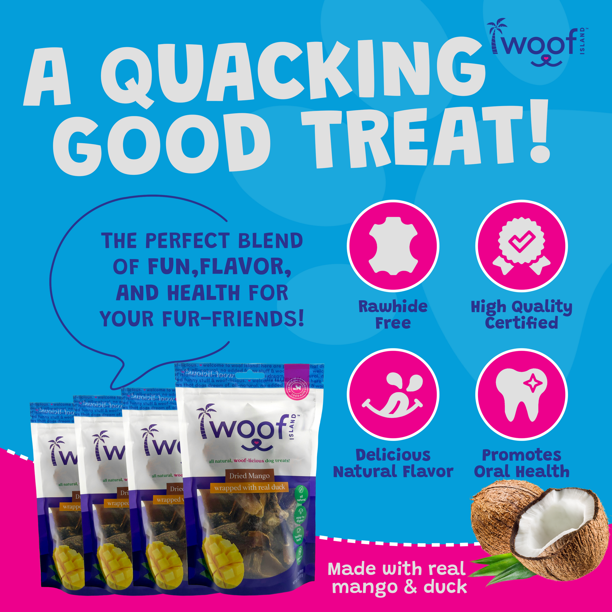 - 100% Natural Dog Chews: Savory meets sweet with these duck dog treats. Made with real duck and dried mango, these bites are free from fillers, additives, and artificial nasties—just woof-worthy goodness